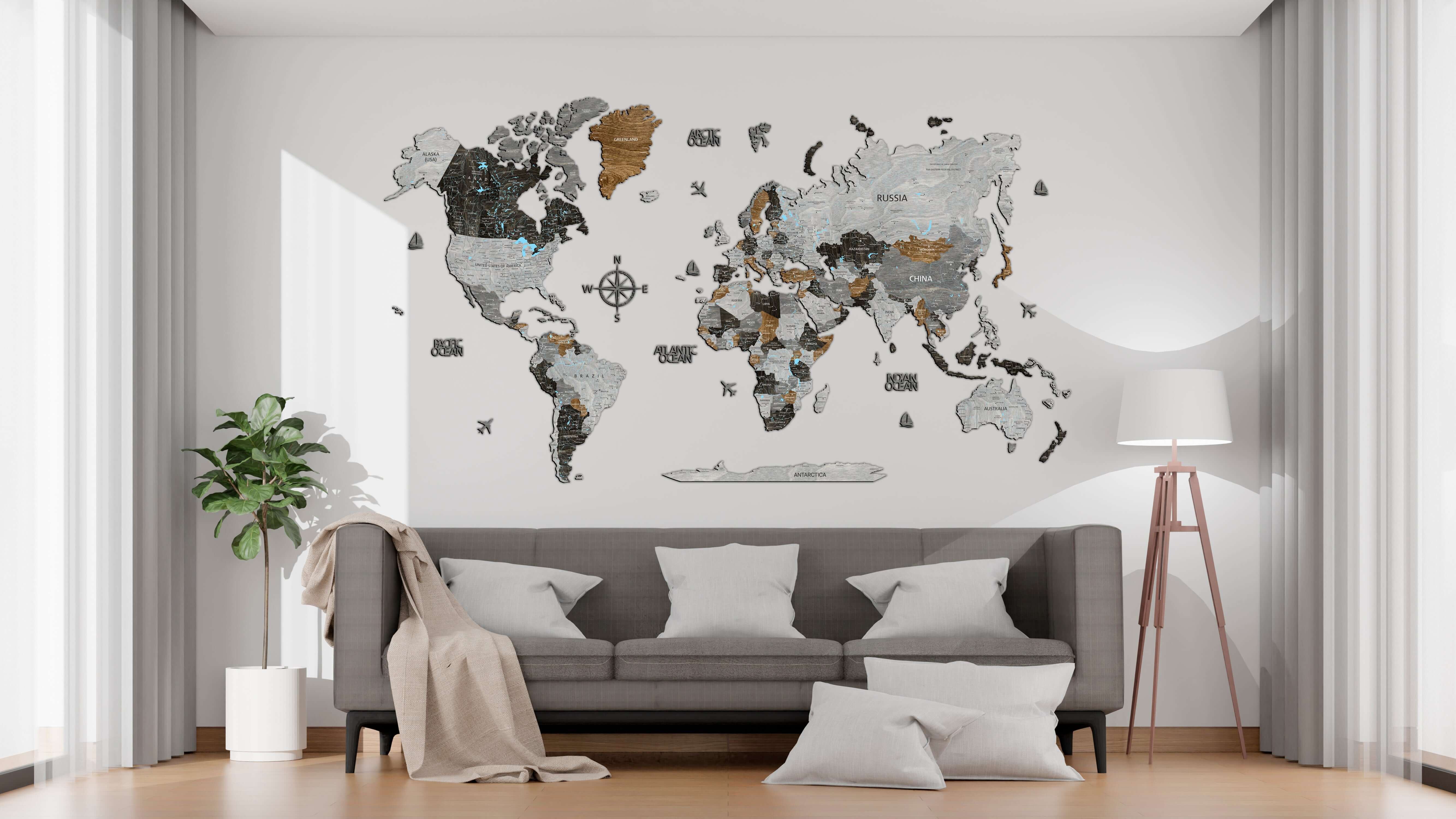Dopasuj drewnianą mapę świata do swojego wnętrza